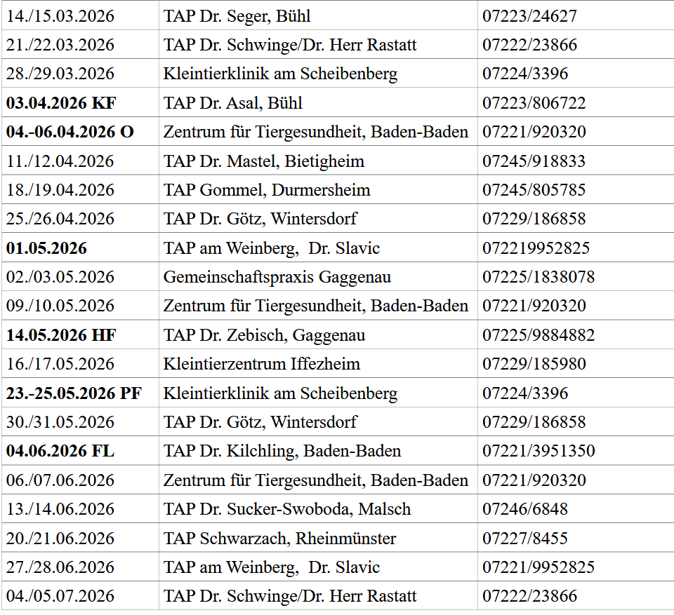 oder Richtung Ortenaukreis über den "Tierärztlicher Verbund Notdienst in der Ortenau"